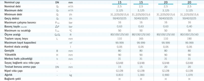* Opsiyonel pulse, M-bus, radyo frekans uyumlu