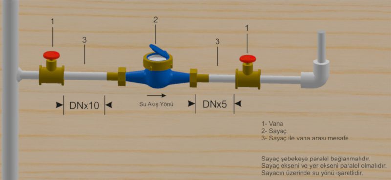 * 5 dijit m3 ve 4 dairesel skala litre göstergeli