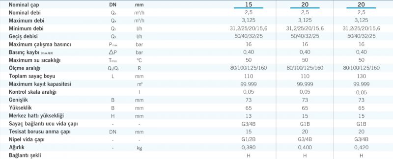 * Opsiyonel pulse, M-bus, radyo frekans uyumlu